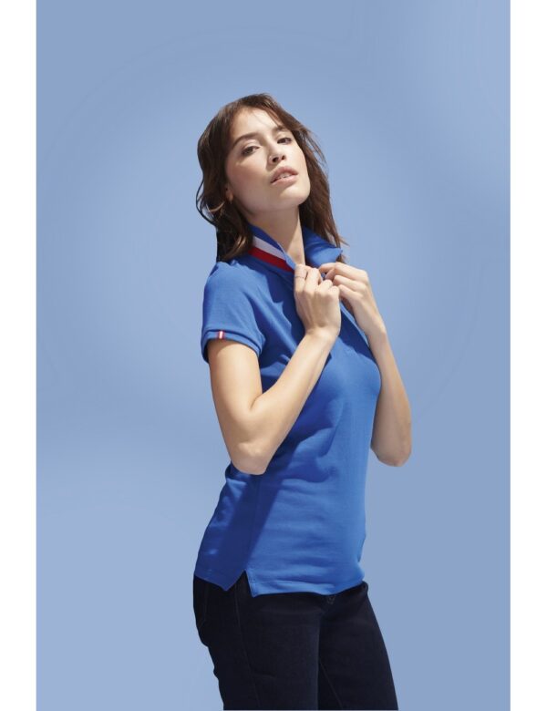 Κοντά μανίκια – Πλαϊνές ραφές – Ενισχυμένη πατιλέτα με 3 περλέ κουμπιά και επιπλέον κουμπί στην εσωτερική ραφή – Ριπ στον γιακά και τα μανίκια – Εφαρμοστή γραμμή – Φακαρόλα στο λαιμό – Ρίγες σε χρωματική αντίθεση κάτω από το γιακά, την πατιλέτα, τα μανίκια και τα πλαϊνά σκισίματα TWIN: Δείτε την ανδρική έκδοση: Patriot – 00576