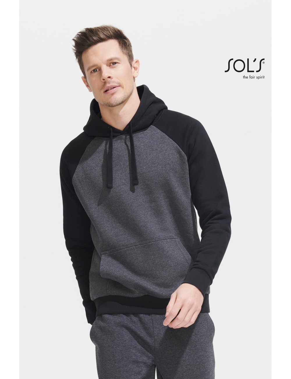 Φούτερ 280g/m² – Βουρτσισμένο fleece εσωτερικά – 80% Βαμβάκι Ringspun – 20% Πολυέστερ, Ύφασμα χαμηλής συρρίκνωσης – LSF || *Charcoal melange/Black:60%Βαμβάκι/40%Πολυέστερ – Grey/Navy&Grey/Burgundy:75%Βαμβάκι/20%Πολυέστερ/5%Βισκόζη – White/Navy&French navy